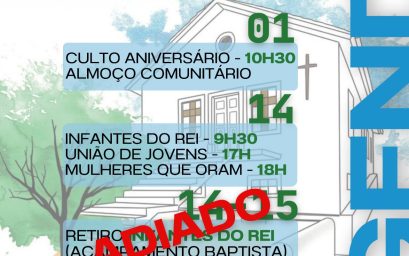 19:00 – Culto de oração e estudo bíblico